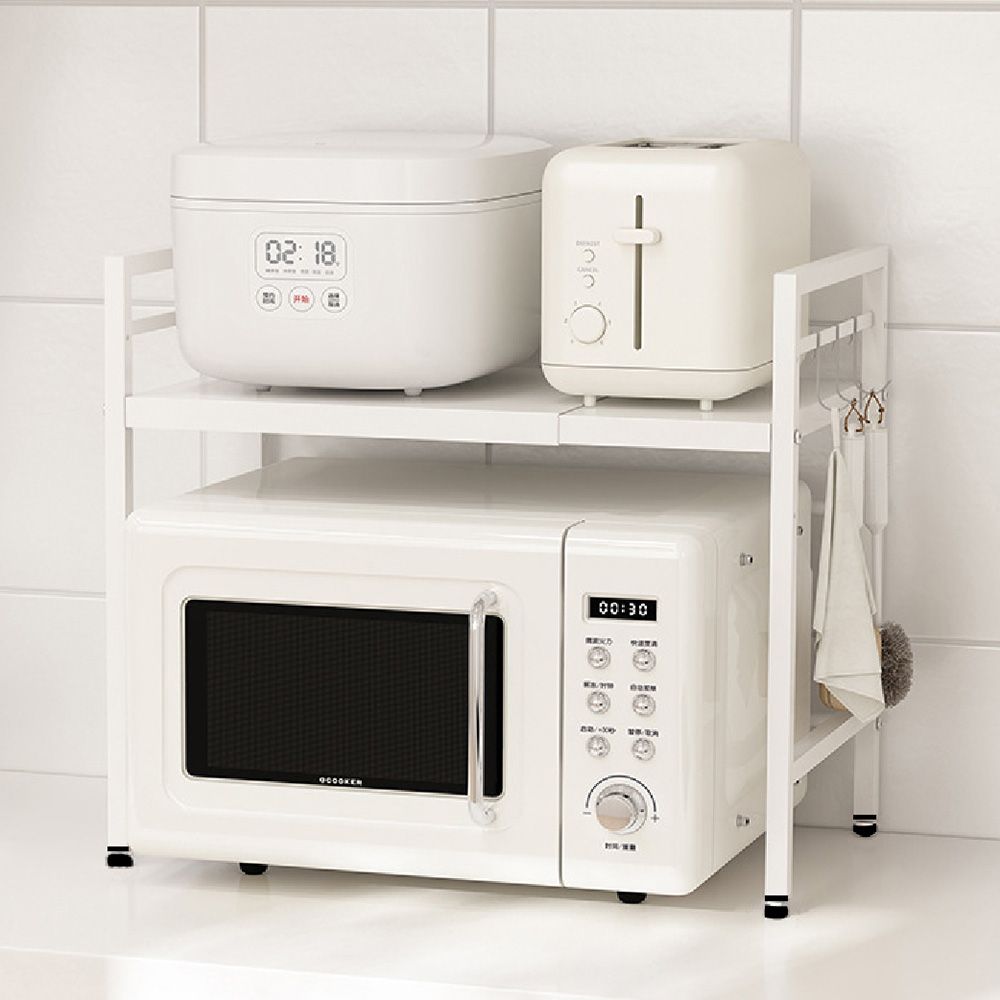 (黑色(大榮宅配免運))【贈掛勾 伸縮微波爐置物架】伸縮置物架 廚房置物架 微波爐架 收納架 廚房收納架 置物伸縮架 烤箱架 氣炸鍋架【DO459】